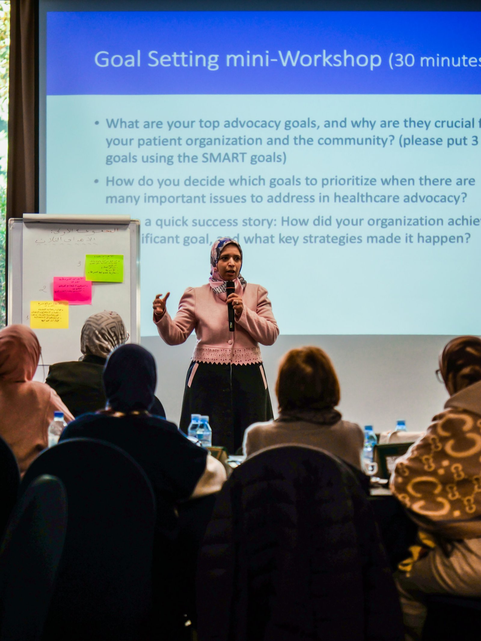 On January 27-28, 2024, NABD-BC2 Association was honored with an invitation from the International Alliance of Patients’ Organizations (IAPO) to a Moroccan cancer patient organizations capacity building workshop co-sponsored by MSD Morocco, at Hotel Kenzi Rose Garden in Marrakech, Morocco. The workshop was facilitated by Dr. Sawsan Al Madhi, Mrs. Daniela Mothci, and Mrs. Bahija Gouimi, this pivotal event marks a significant milestone in advancing health literacy, advocacy skills, and education on Personalized Cancer Care (PCC) in the Eastern Mediterranean region. Stemming from the establishment of the Personalised Cancer Care Alliance (PCCA) in 2022 and the groundbreaking position paper launch on PCC in the Eastern Mediterranean in 2023, Morocco plays a pioneering role in implementing the 5 Ps of cancer care: predictive, preventative, participatory, personalized, and pre-emptive. The comprehensive two-day program included a visit to Dar Al Amal, the headquarters of “Association des Malades Atteints de Leucémies,” a welcome dinner, and a full-day workshop, providing a platform for collaboration, capacity building, and the cultivation of a PCC chapter in Morocco. The meticulous feedback gathered from a survey involving 12 patient organizations informed the development of this workshop, ensuring its relevance and effectiveness in addressing the specific needs of the patient community.