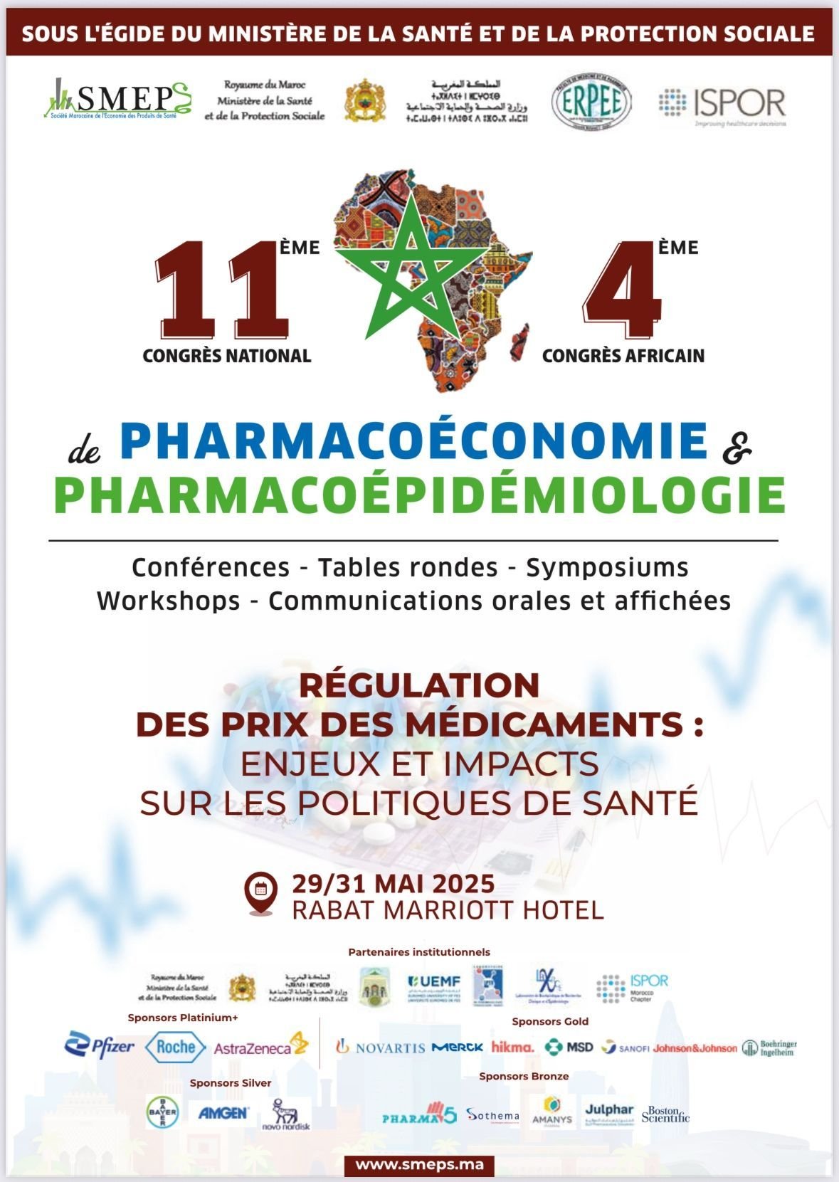 NABD-BC2 association is proud to have taken part in the 11th National and 4th African Congress of Pharmaco-economics and Pharmaco-epidemiology, organized by SMEPS (Moroccan Society for Health Product Economics), held in Rabat, Morocco, from May 29 to 31, 2025. The association was represented by its president, Ms. Ikram Eseghir.