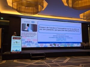 Ms. Ikram Eseghir delivered a compelling presentation during a session supported by Novartis Laboratories, dedicated to “The Impact of Access to Innovation on Patients’ Quality of Life.” Her intervention highlighted the crucial role of therapeutic innovation in transforming patient care and empowering patient voices within policy frameworks. Her contribution was widely praised for its clarity, depth, and strong advocacy for patients’ rights and well-being.
